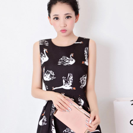 这是一款圆领韩版设计的白天鹅图案个性修身连衣裙。面料采用厚实的棉+涤纶,手感柔软有立体感!版型收腰修身显瘦,整体效果大方