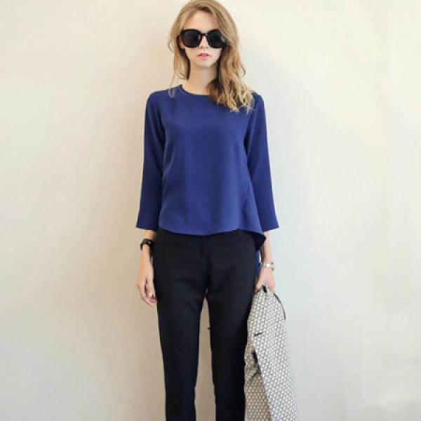 欧洲站2014秋装新款欧美风格九分袖时尚宽松雪纺衫+铅笔裤套装